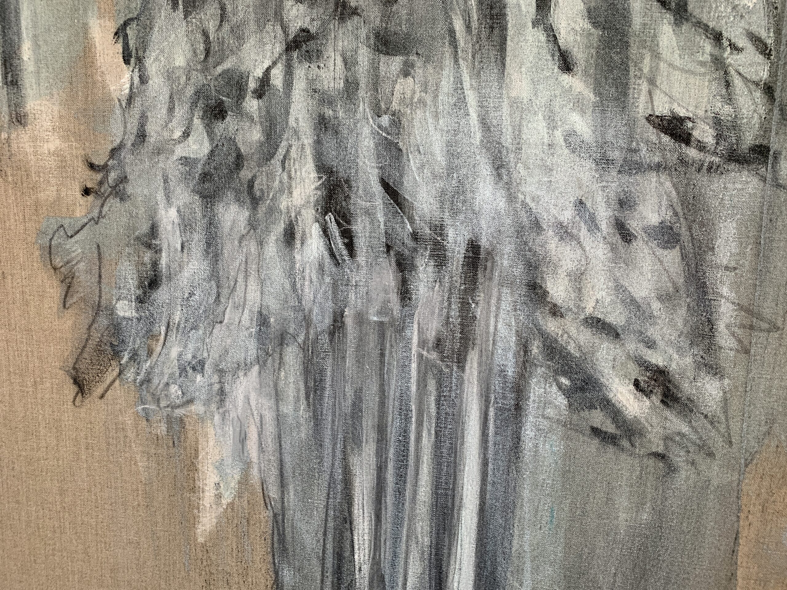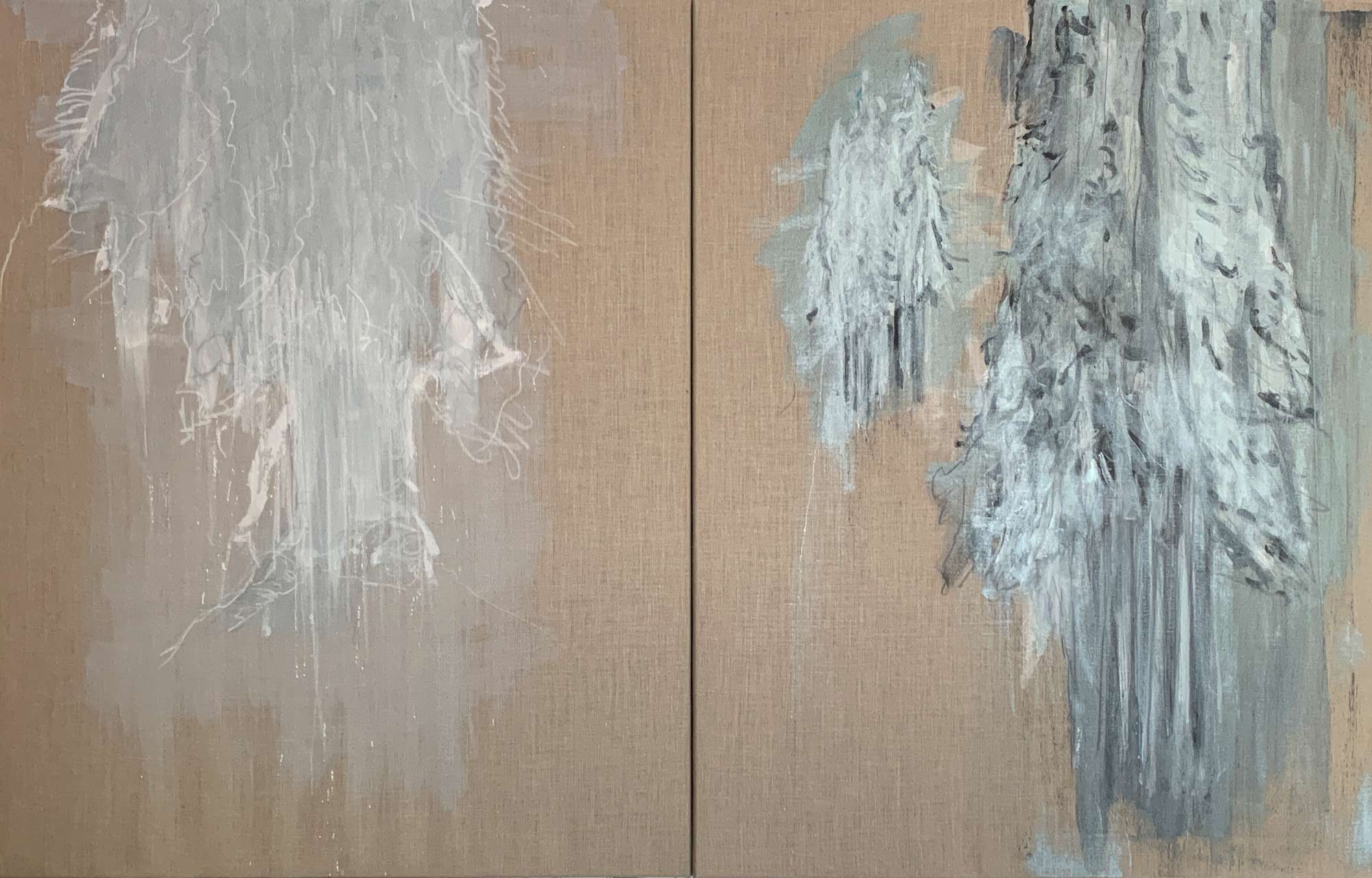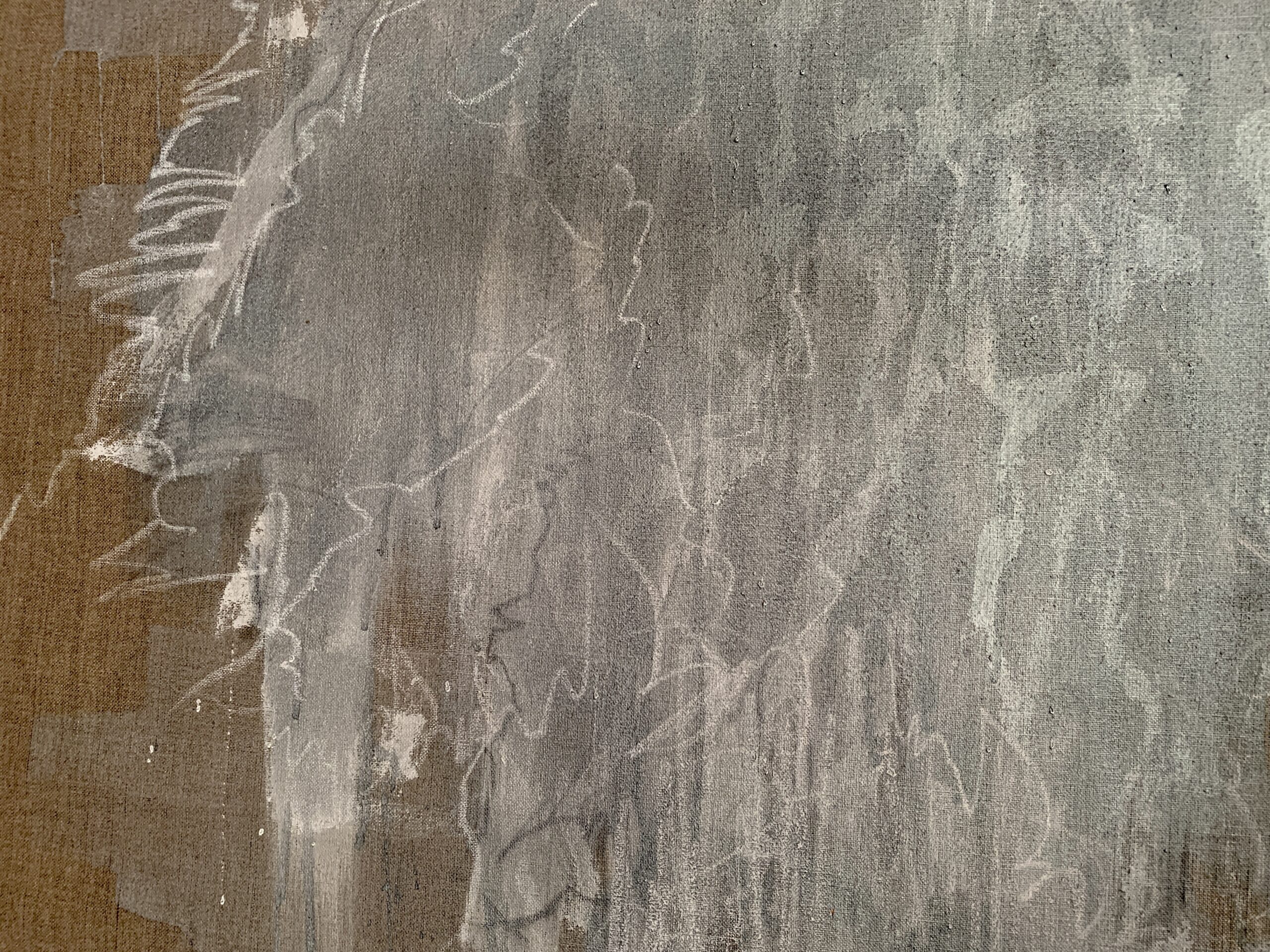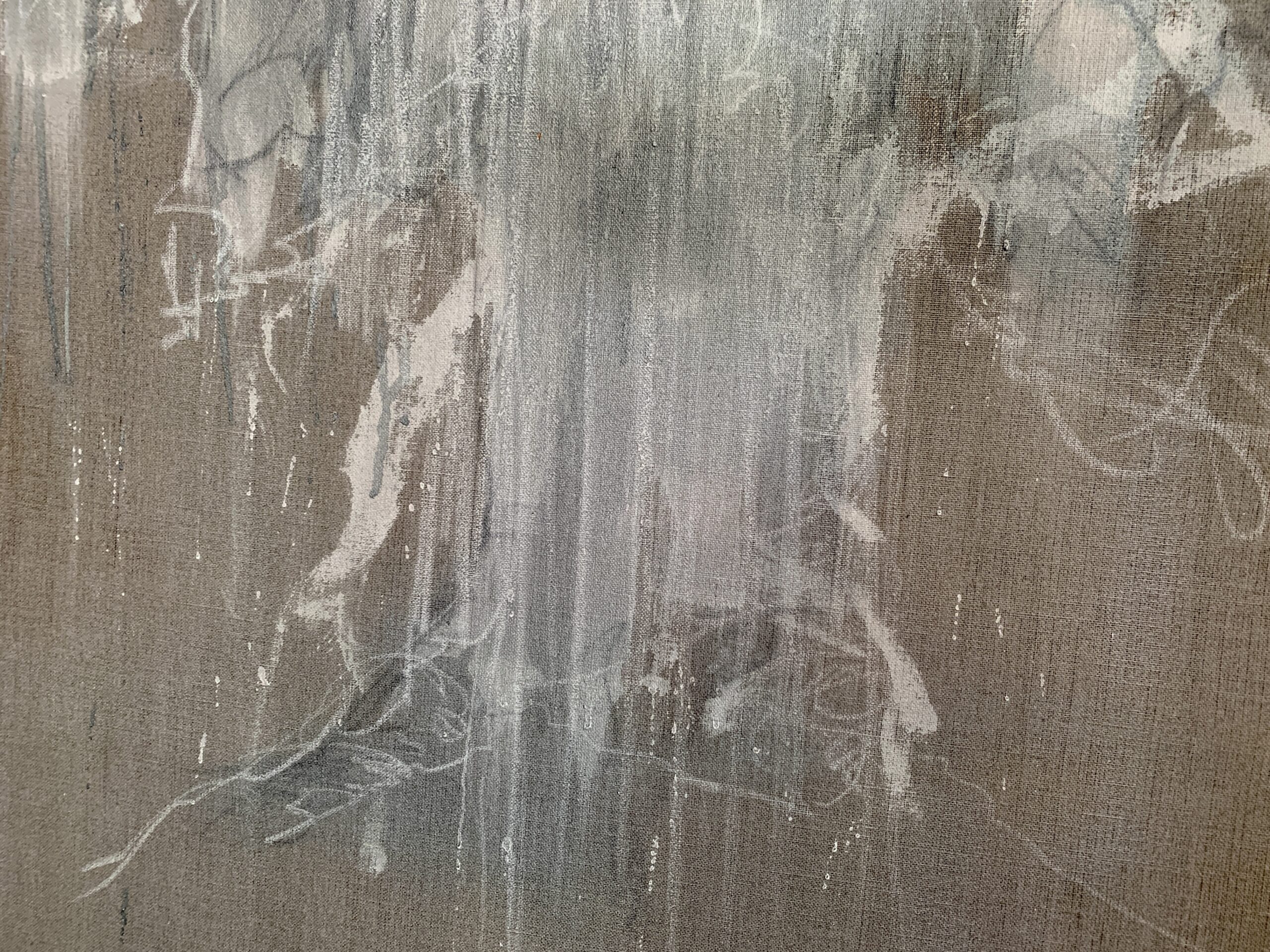 Drei Bilder, je 100 x 120 cm, Acryl, Farbstift auf Leinwand